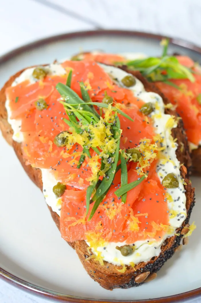 These smoked salmon tartines are top-notch because of a bit of horseradish added to the creamy cheese. It can't be beat!