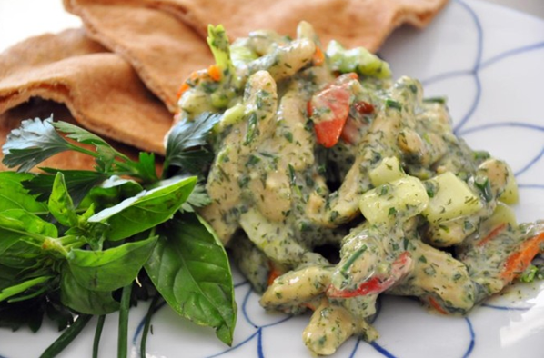 This salad has a history that cannot be forgotten. It is a non vegetarian salad which consists of the green goddess dressing mixed with chicken, peppers, olives and celery. You have to toss it for some time till you see that all the ingredients are mixed.