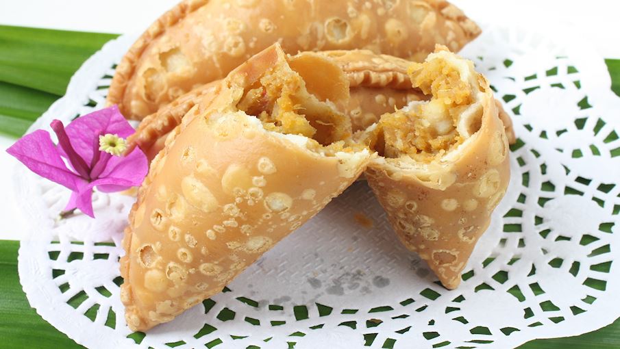 Karipap or curry puff is a small, deep-fried or baked pastry shell filled with thick chicken and potatoes curry. It is believed that the flavorful snack was invented by the Malays from the Malay Peninsula and parts of Sumatra and Borneo.