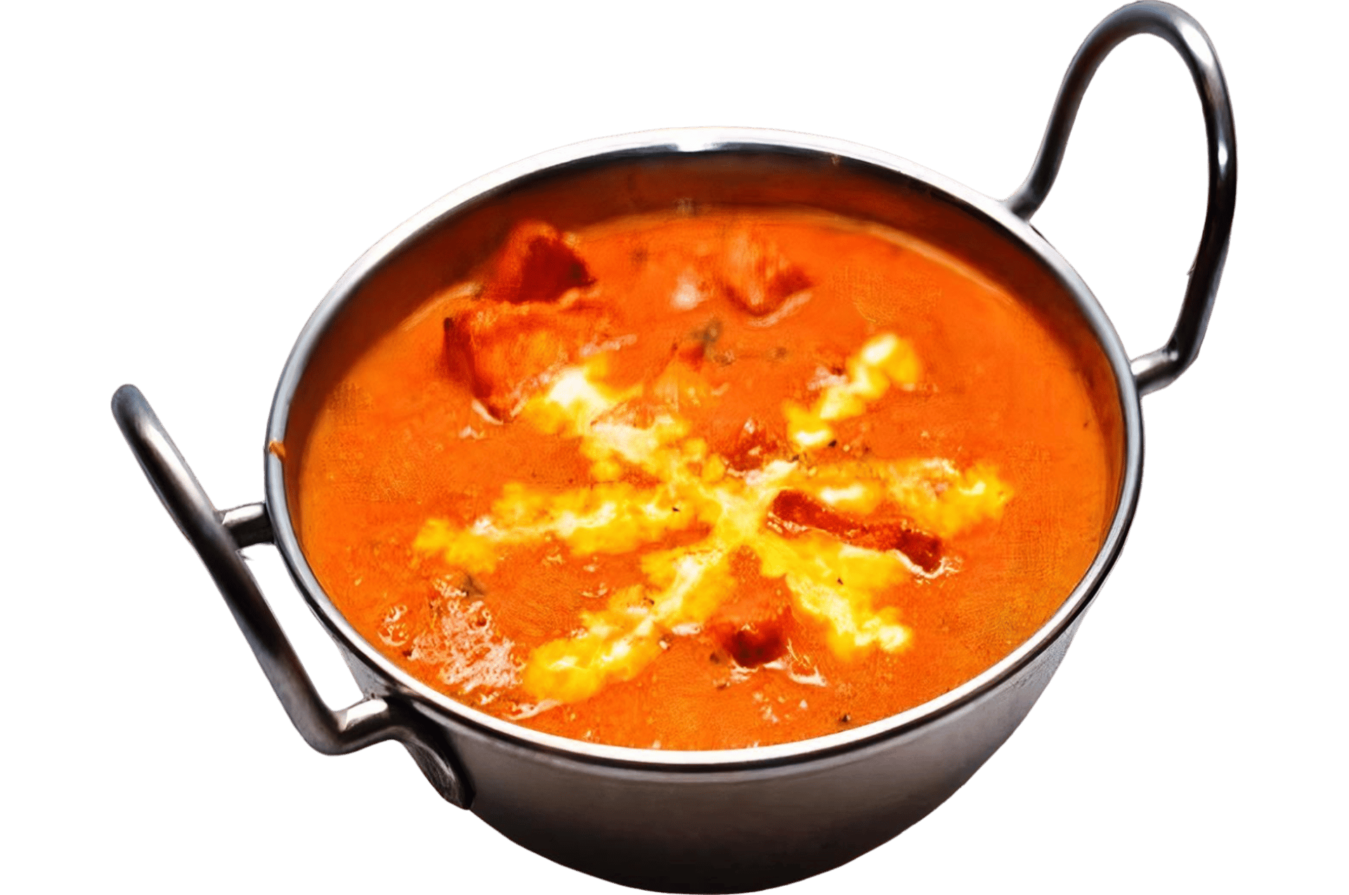 Cheese cubes cooked in a creamy tomato sauce.
